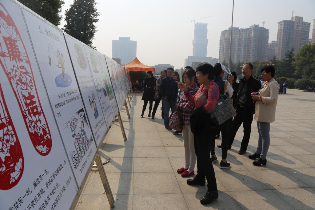 根据学校“反腐倡廉教育月活动”的统一安排,为了进一步营造崇尚廉洁、风清气正的工作环境,10月21日上午,在财务处处长王林、副处长郑国宏,基建处处长杨海钦、副处长李东海的带领下,两个部门全体教职工前往弘毅广场参观廉政漫画展览。