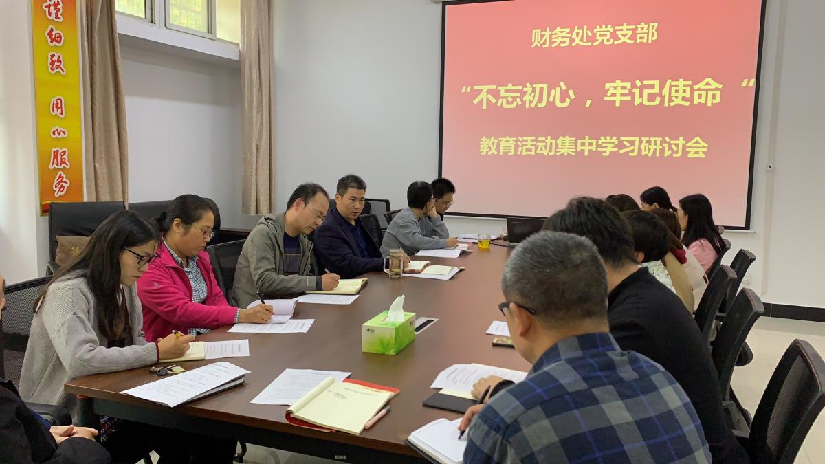 2019年10月18日下午,财务处党支部在学习室开展“不忘初心、牢记使命”教育活动集中学习研讨会。会议由党支部书记郑国宏主持,财务处全体党员及教职工参加。