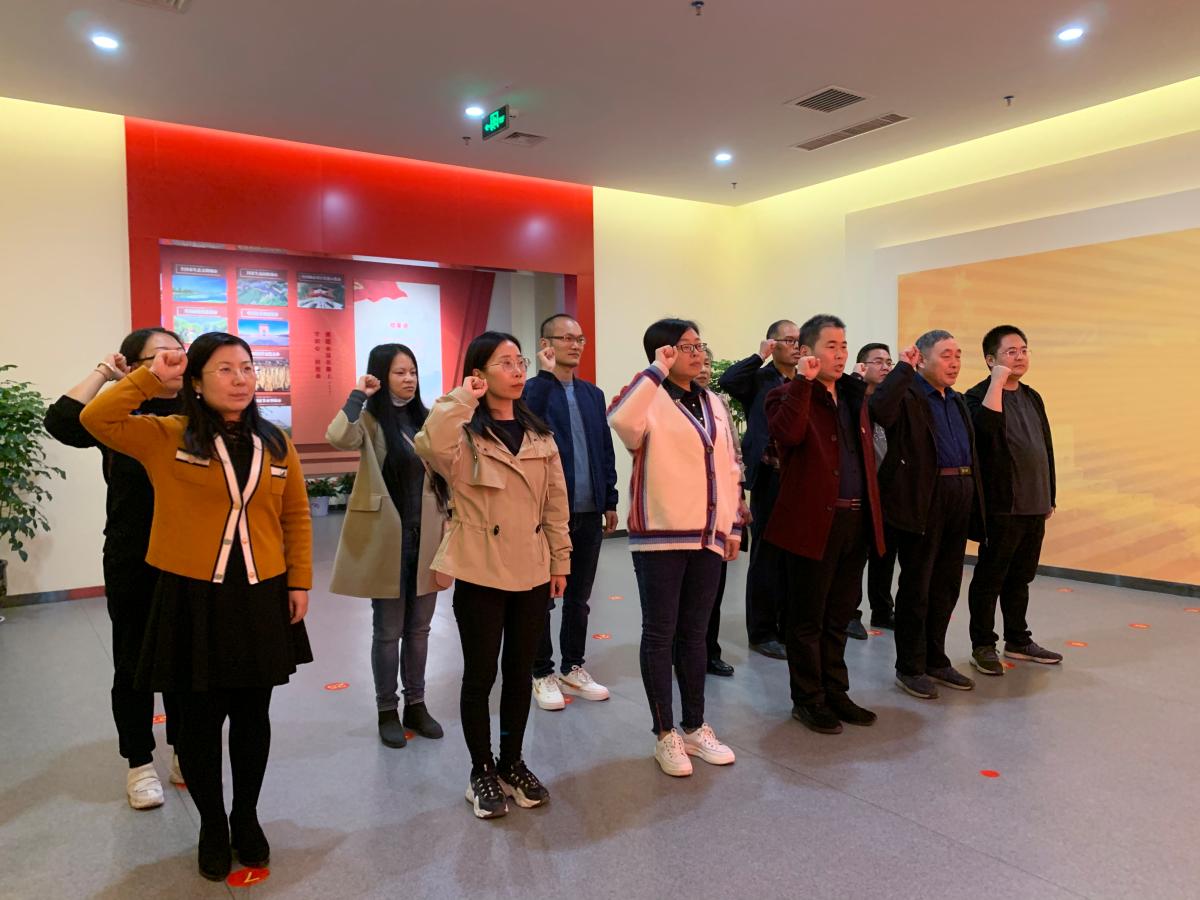 在党史馆宣誓厅,全体党员紧握右拳,面对鲜红的党旗宣誓,重温入党誓词,再次感受作为共产党员的初心与光荣,使命与责任。