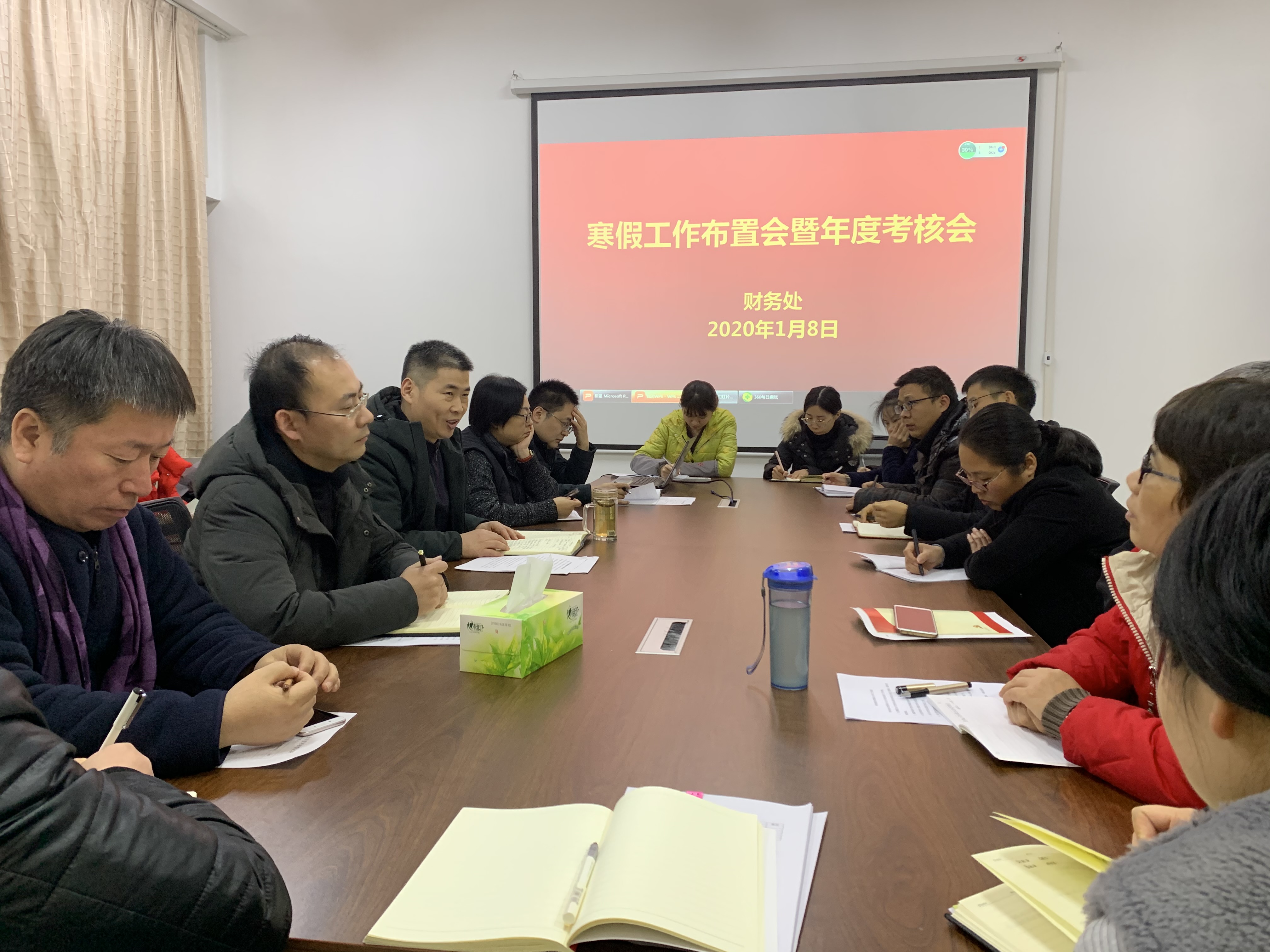 2020年1月8日下午,财务处在业务学习室召开2020年度寒假工作布置会暨年度考核会,财务处全体职工参加,会议由郑国宏主持。