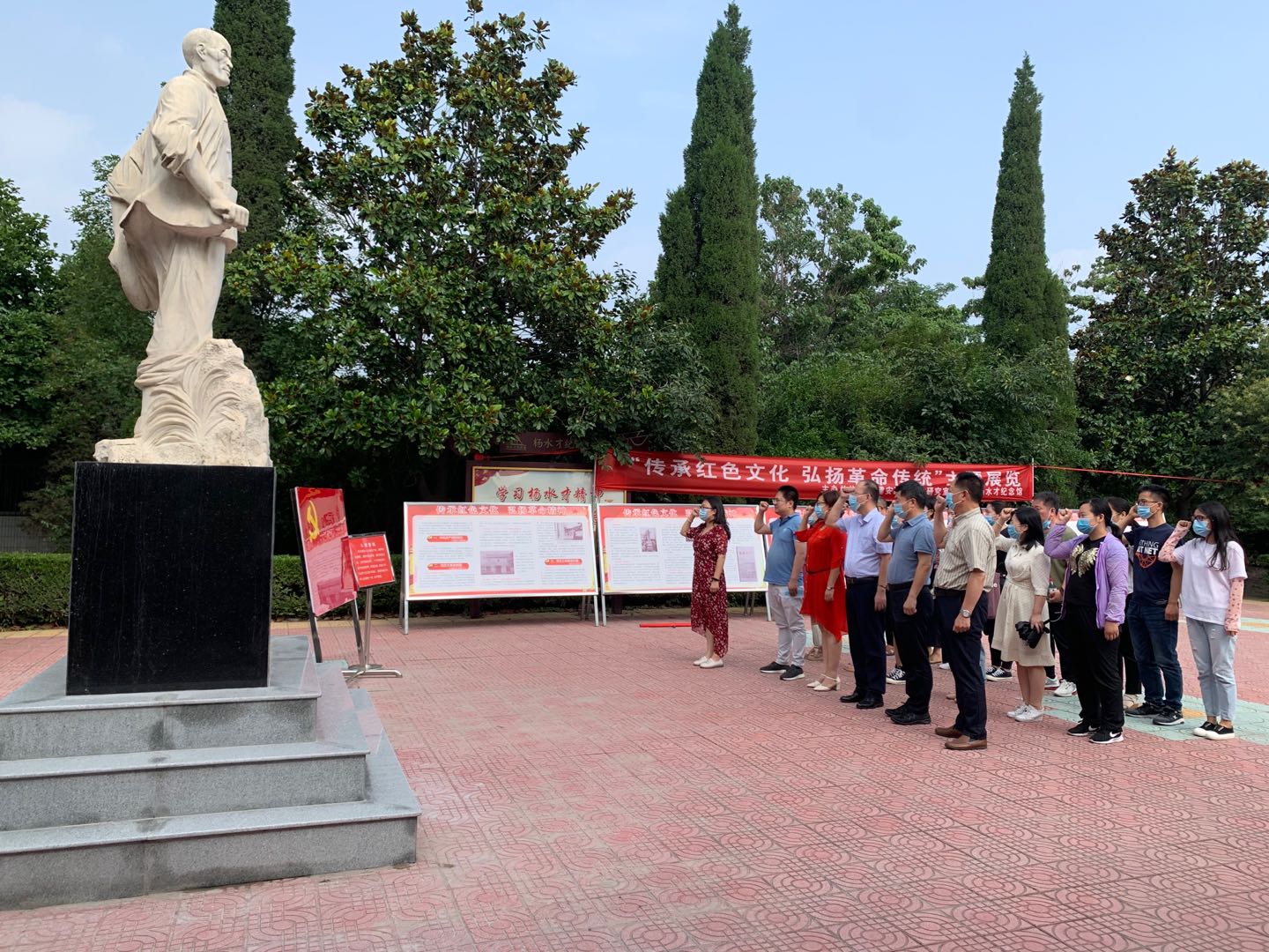 下午4点左右到达杨水才纪念馆,财务处全体成员首先在杨水才白玉雕像面前合影,随后向党旗重温了入党誓词,一声声誓词铿锵有力,表明了财务处全体党员为革命奉献的决心。