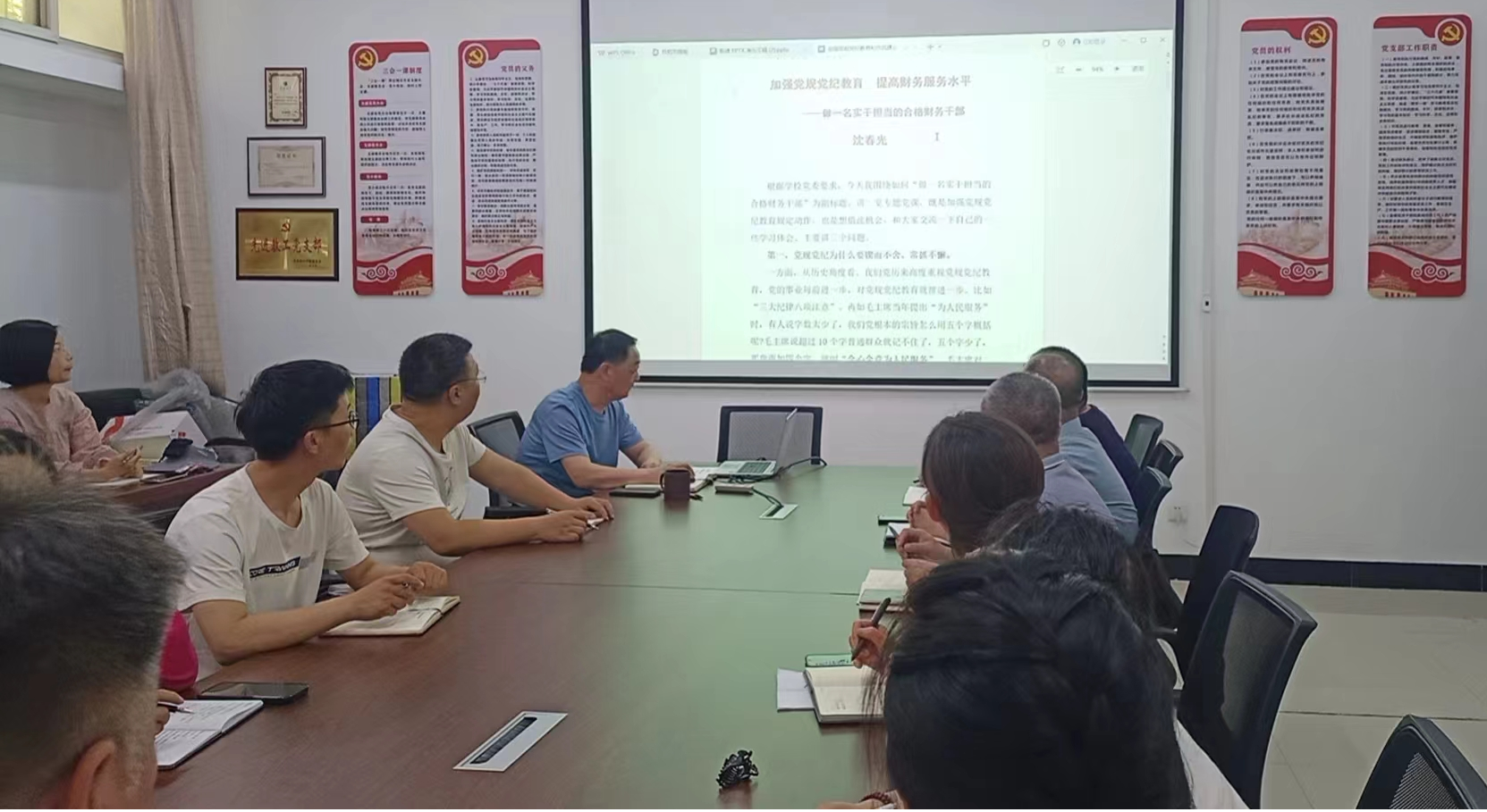 2024年5月17日下午,财务处党支部举办党规党纪教育—党支部书记讲党课活动,本次党课由财务处党支部书记沈春光同志主讲。党课标题为《加强党规党纪教育 提高财务服务水平——做一名实干担当的合格财务干部》。